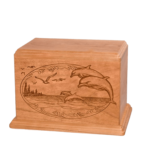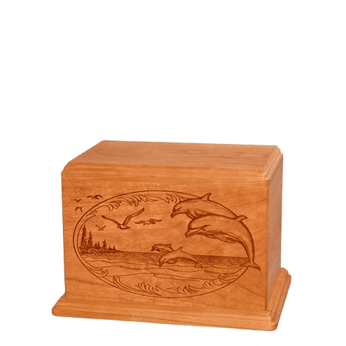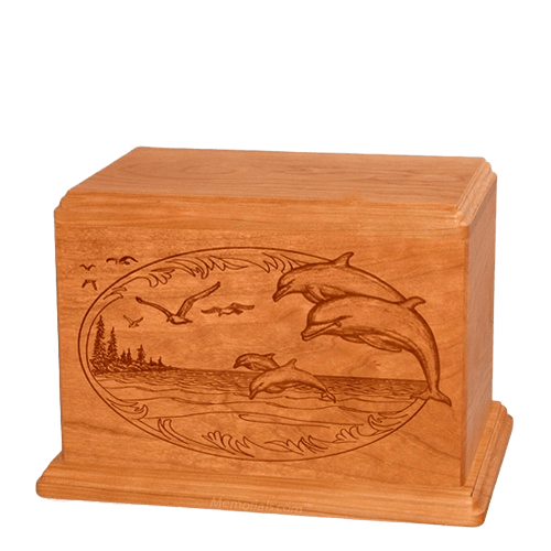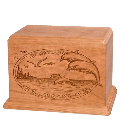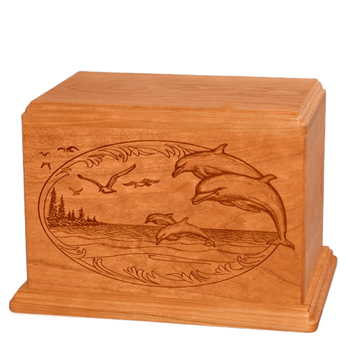 Dolphin Companion Cherry Wood Urn