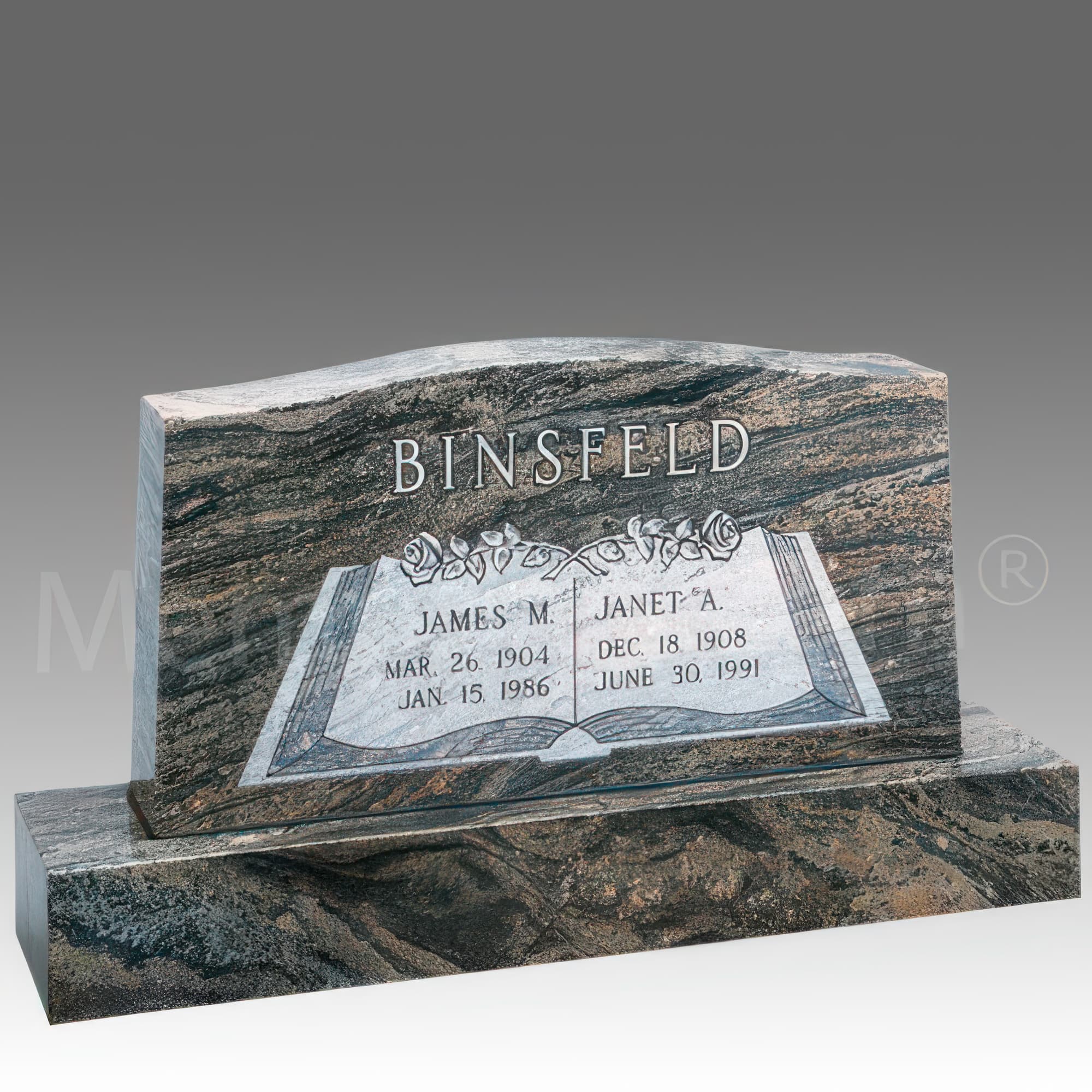 Book of Roses Granite Upright Headstone II