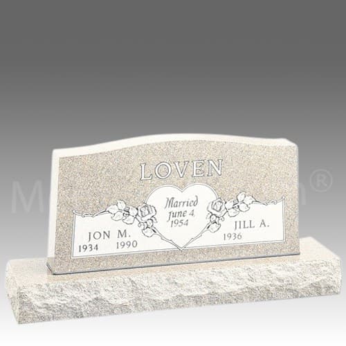 Heart of Roses Granite Upright Cemetery Headstone
