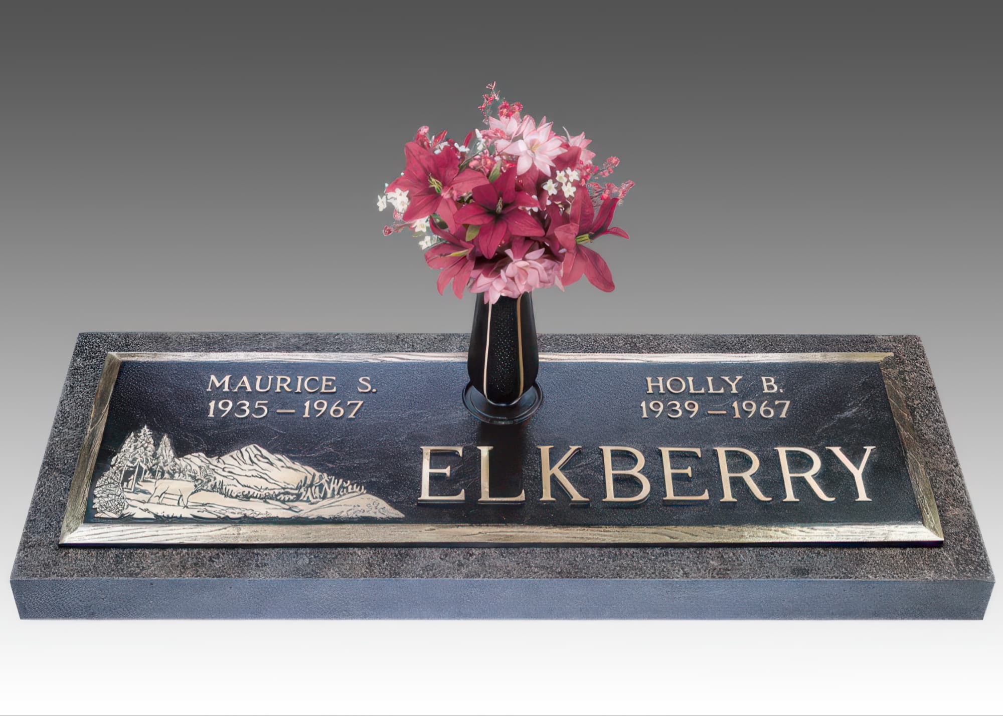 Scenic Hidden Valley Bronze Headstone 56 x 16
