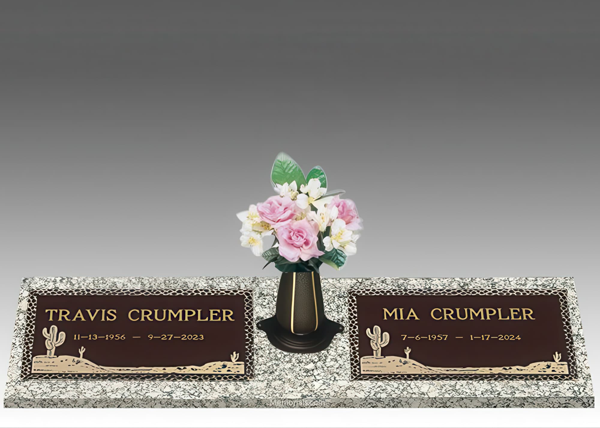 Desert Cactus Double Large Bronze Headstone II