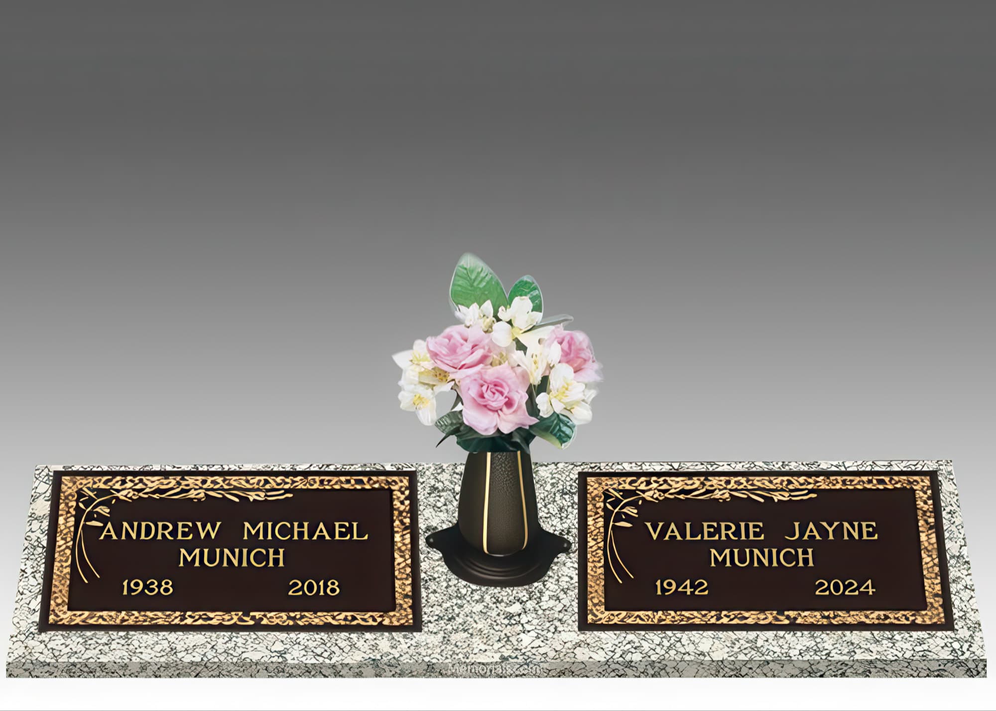 Dignity Castle Rose Double Bronze Headstone II