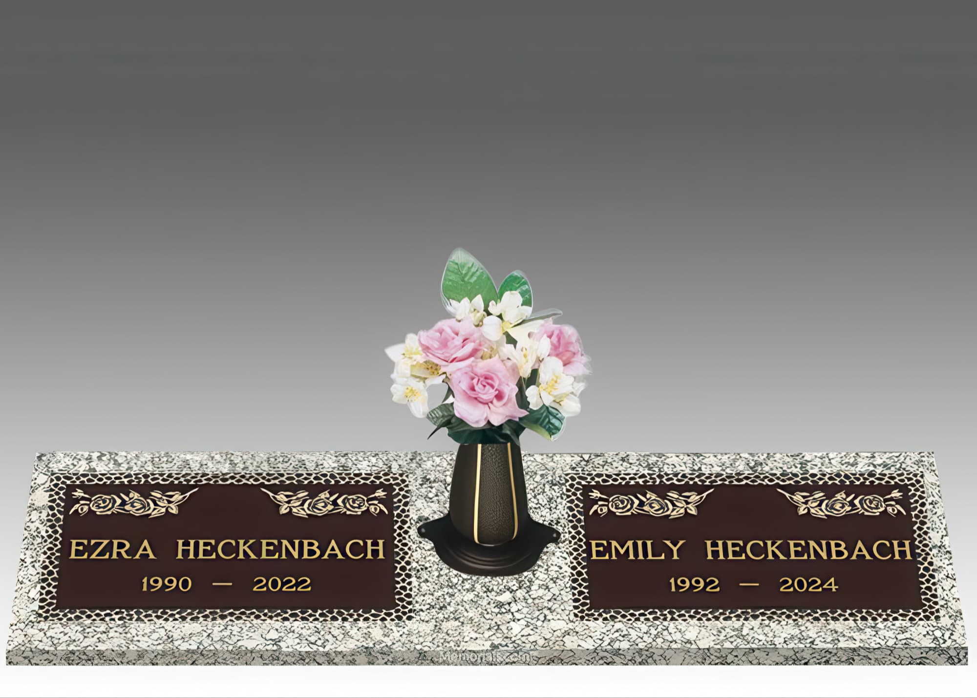 Garden of Life Rose Double Large Bronze Headstone II