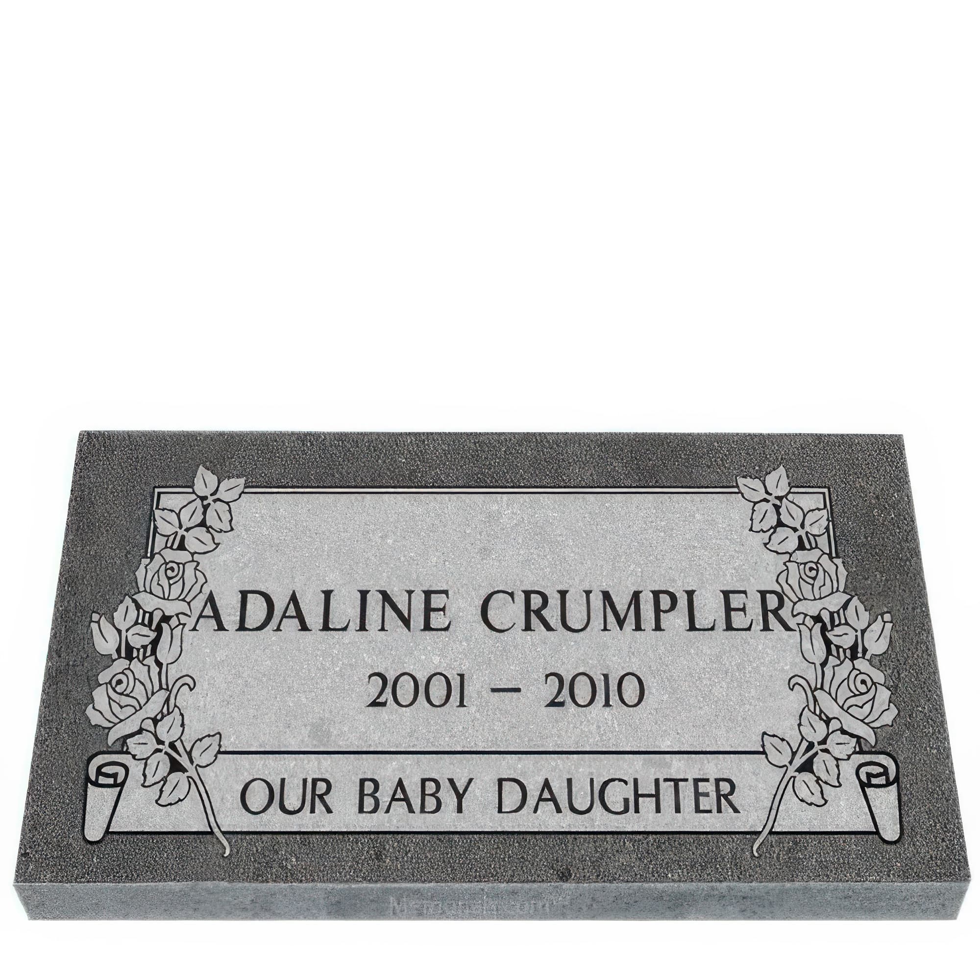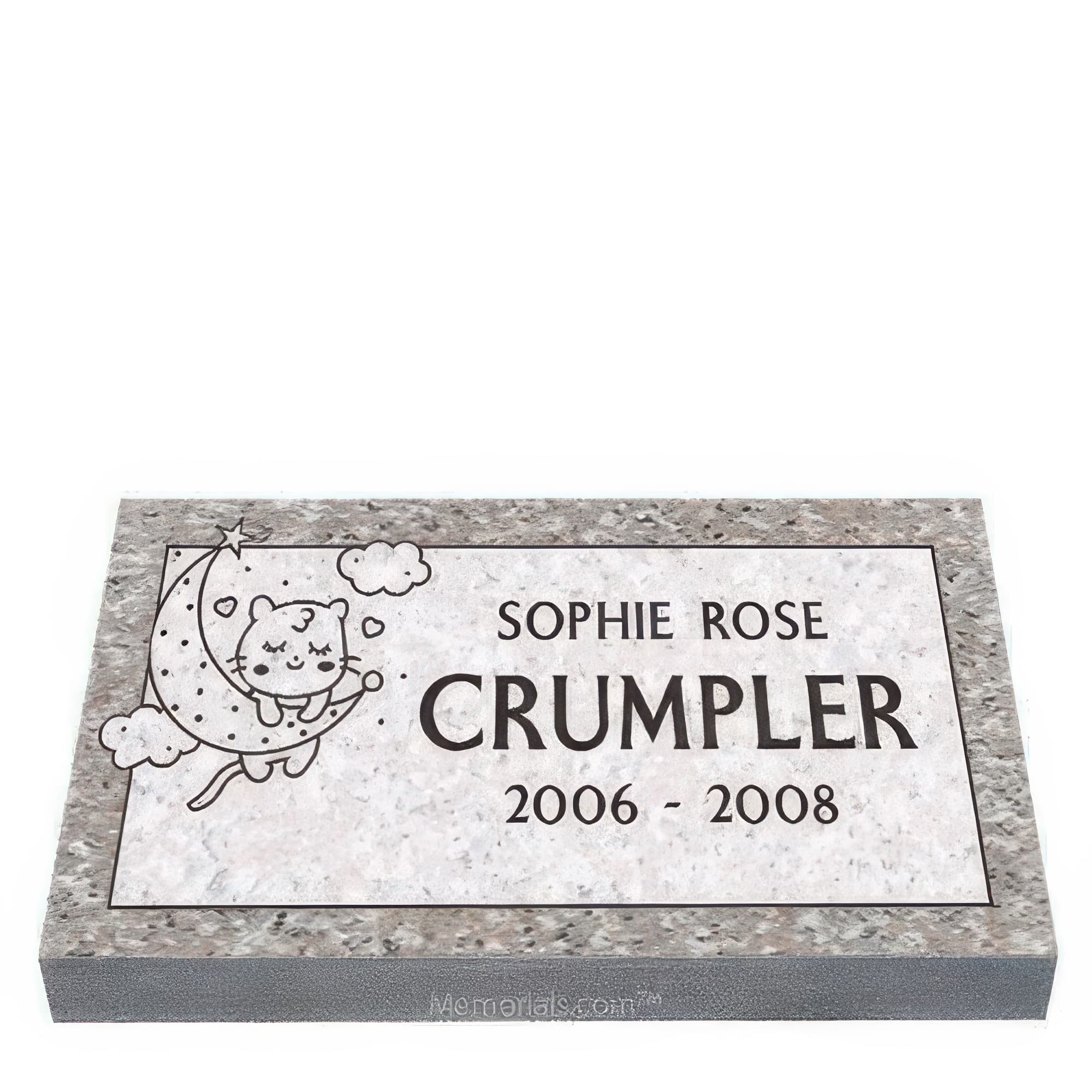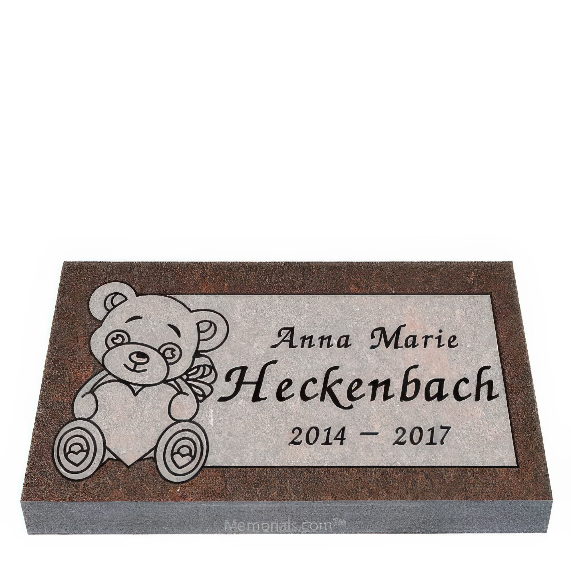 Memorials.com offers a compassionate selection of baby headstones and children's granite grave markers designed for infant and child memorials. Our baby girl baby headstones for graves and headstone for baby boy designs feature angels, teddy bears, butterflies, and other meaningful motifs, each carved from durable cemetery-grade granite. Every baby tombstone is fully customizable with engraved names, dates, and personal messages โ and every order ships free.
