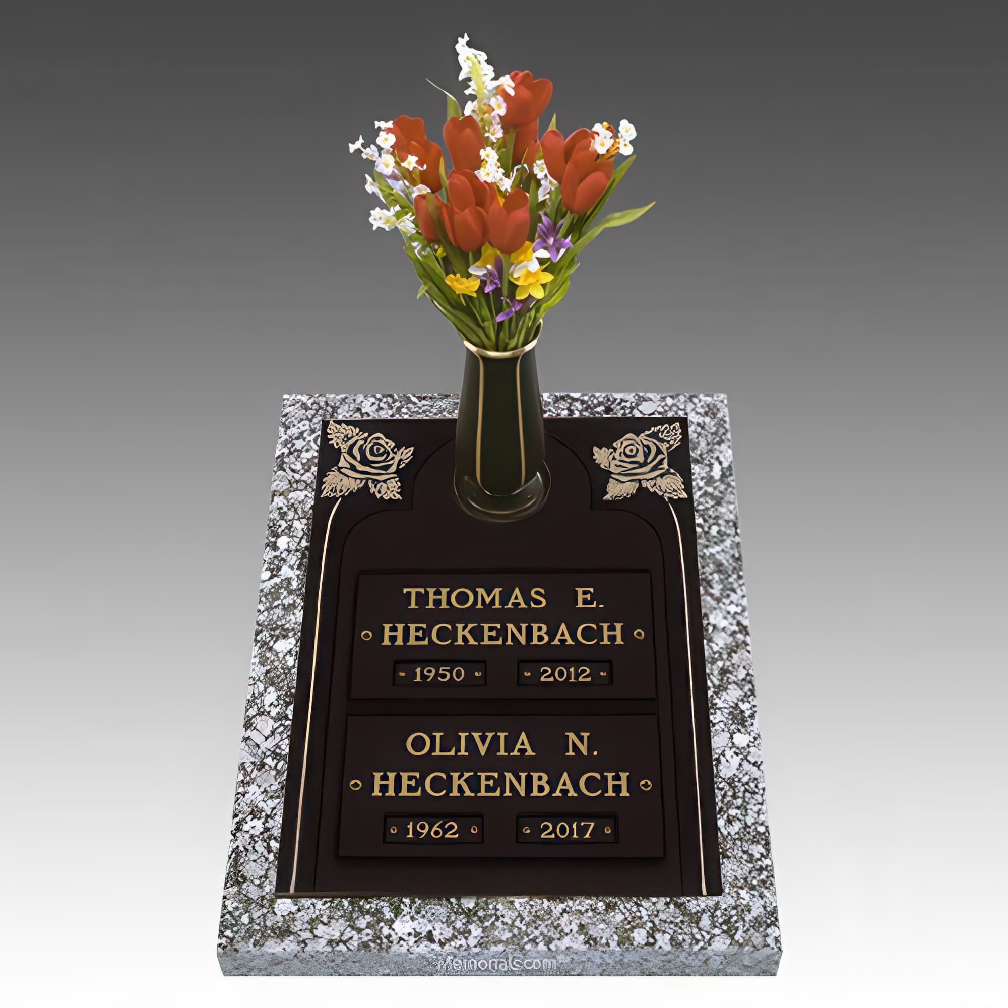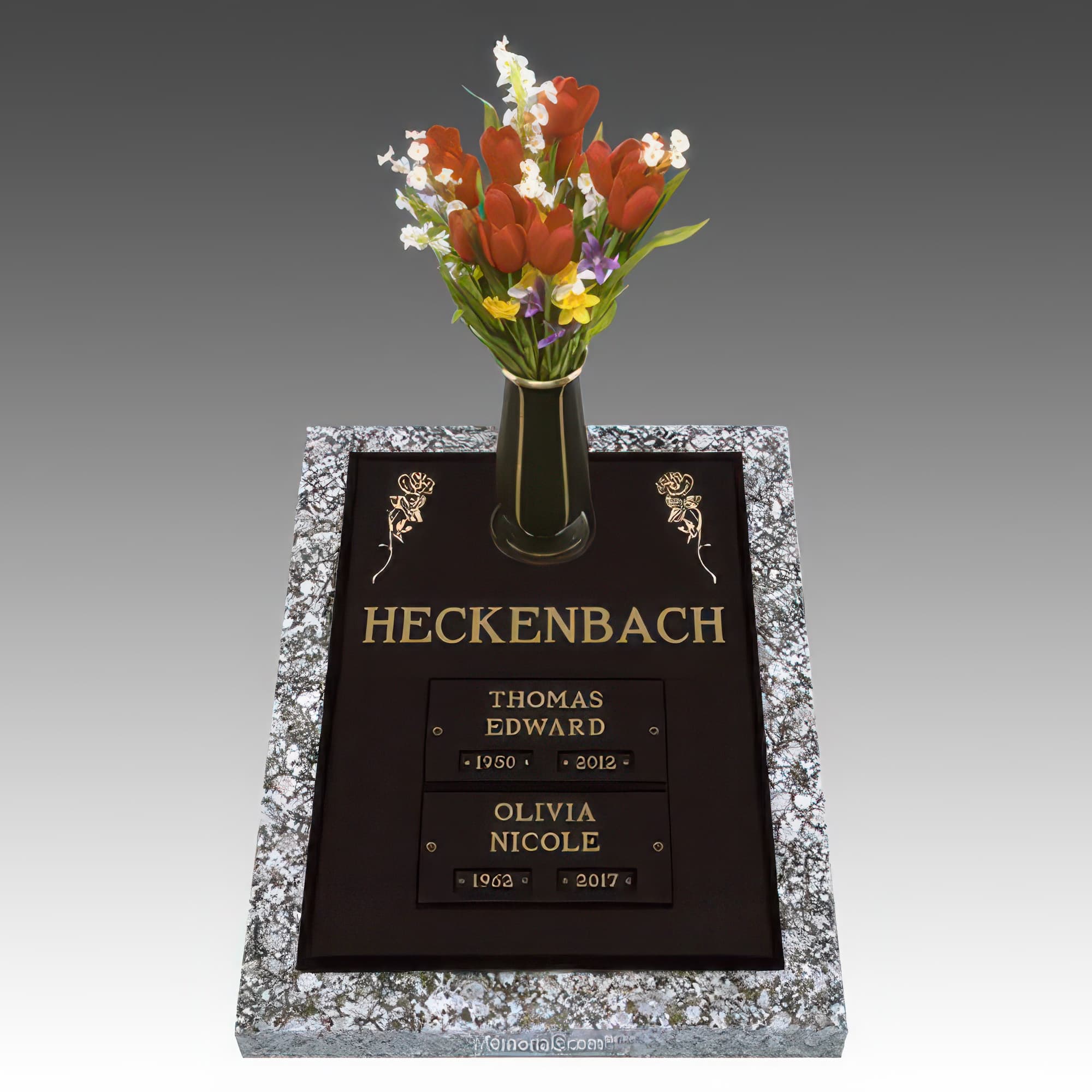 Double Rose Companion Cremation Grave Marker