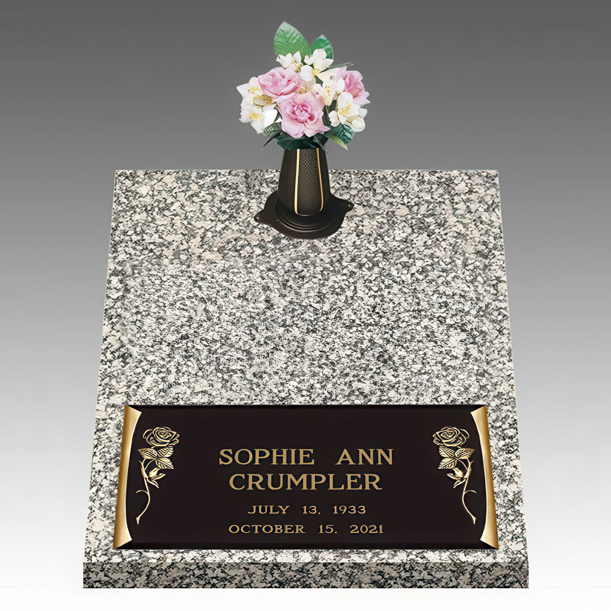 Dynasty Tea Roses Deep Top Bronze Headstone II
