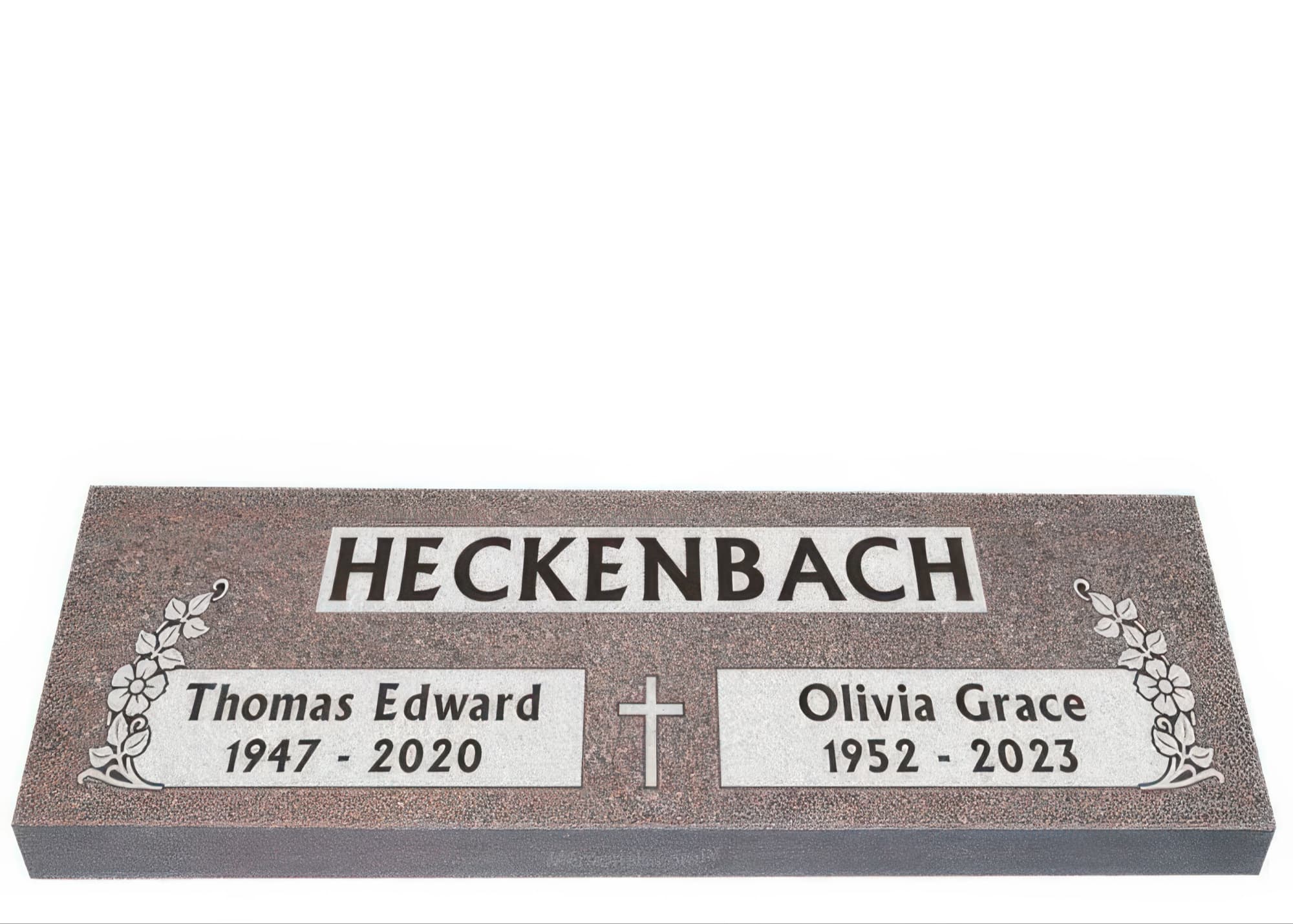 Spiritual Flowers Companion Granite Headstone 48 x 18