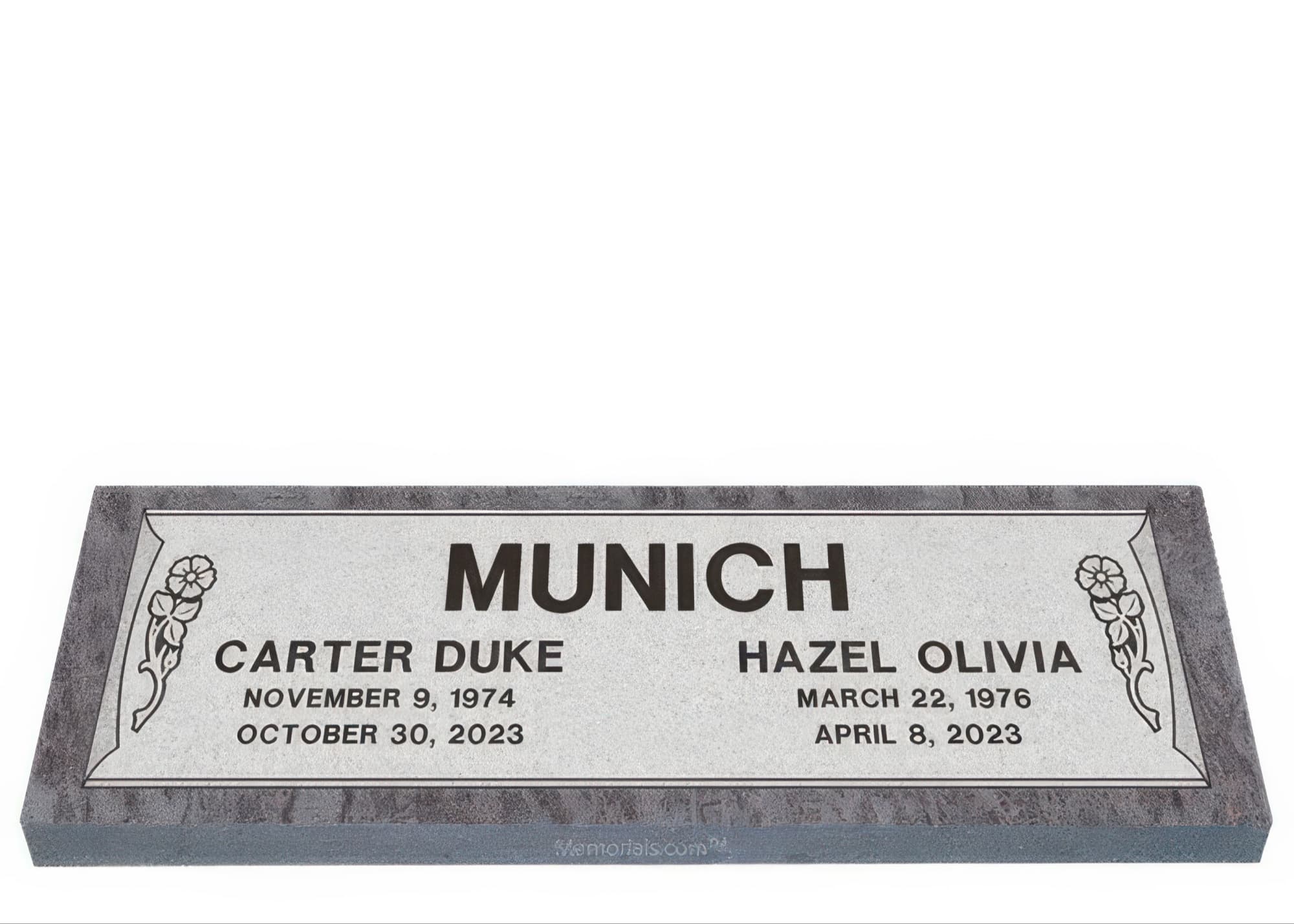 Together Roses Companion Granite Headstone 60 x 20