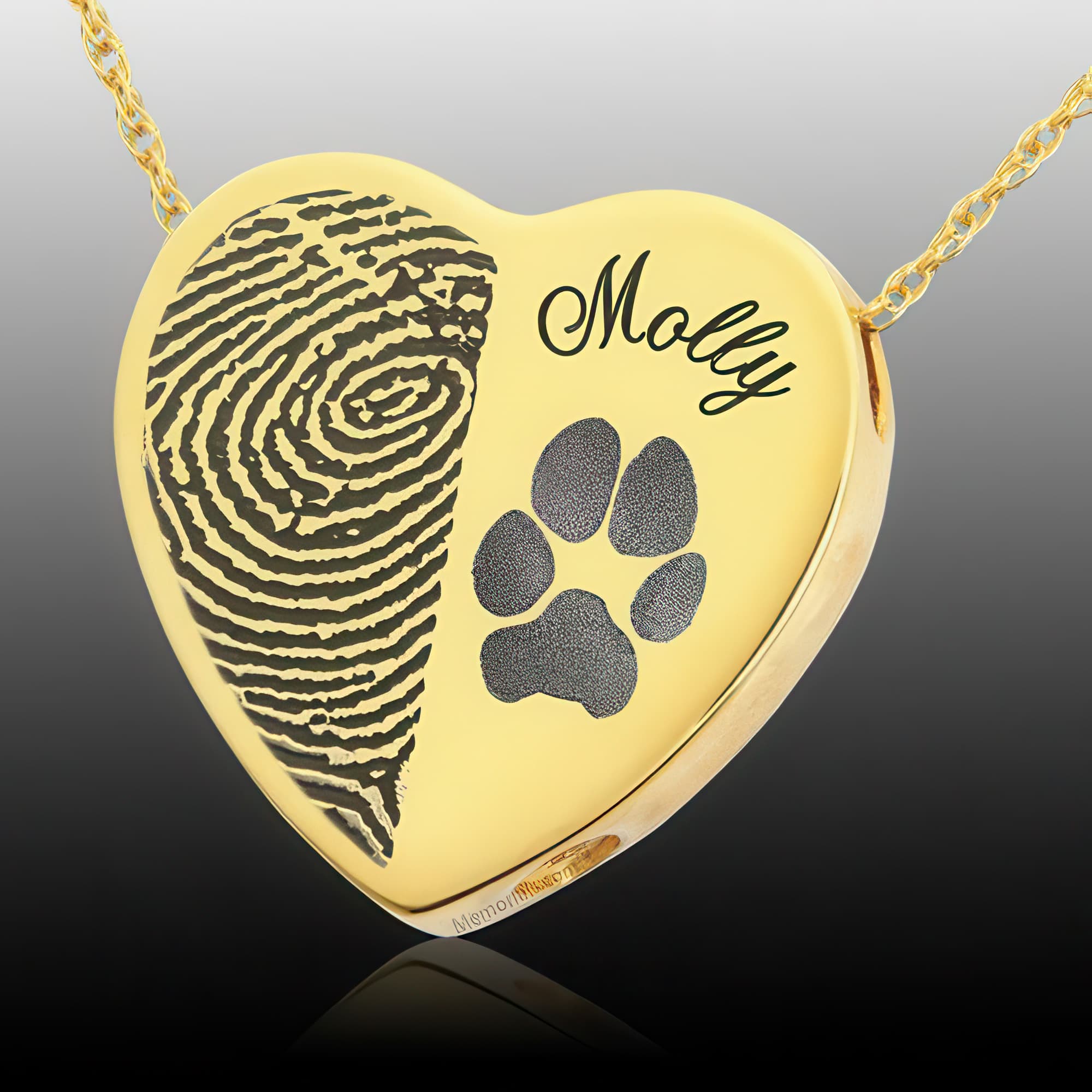 Heart Name & Paw 14k Gold Print Cremation Keepsake