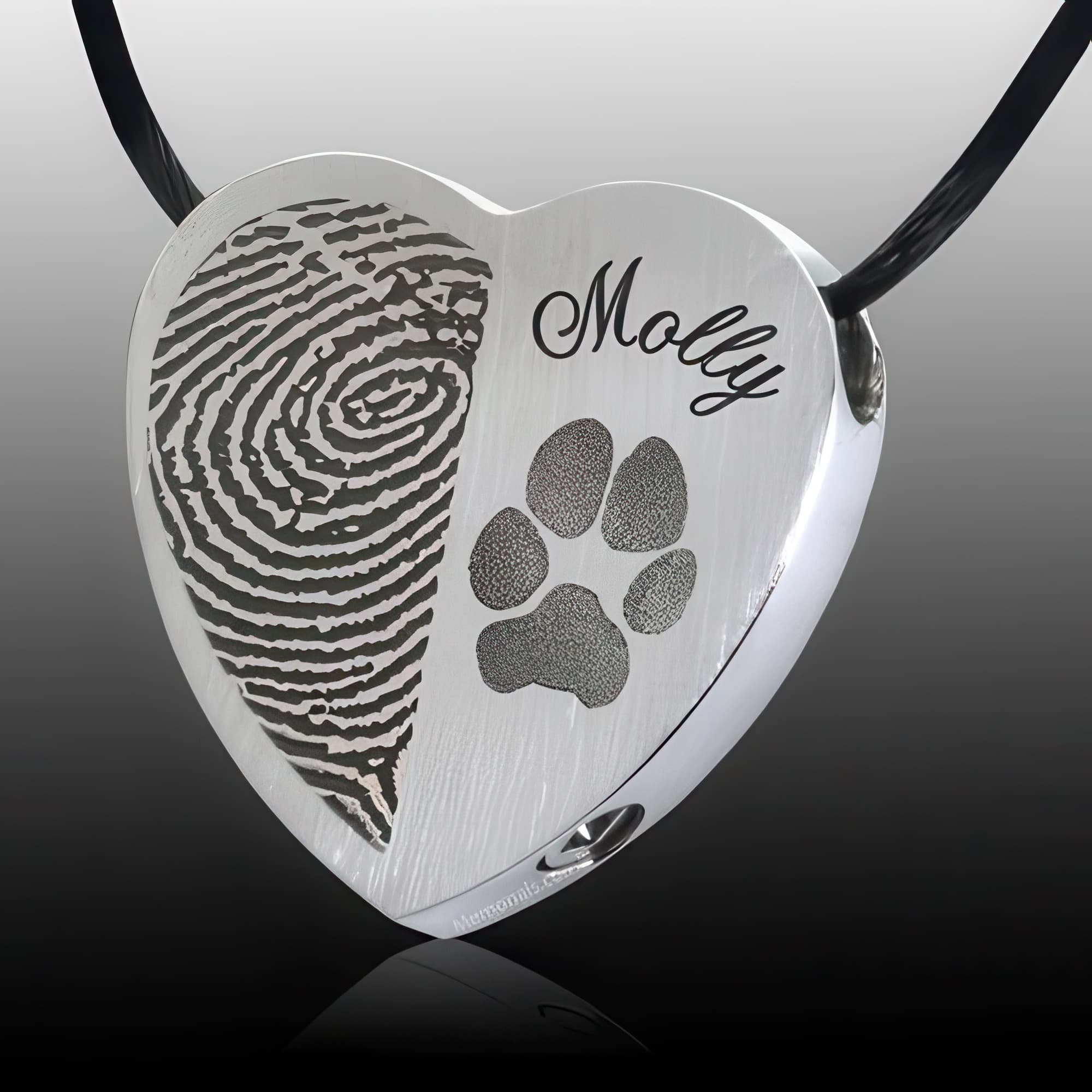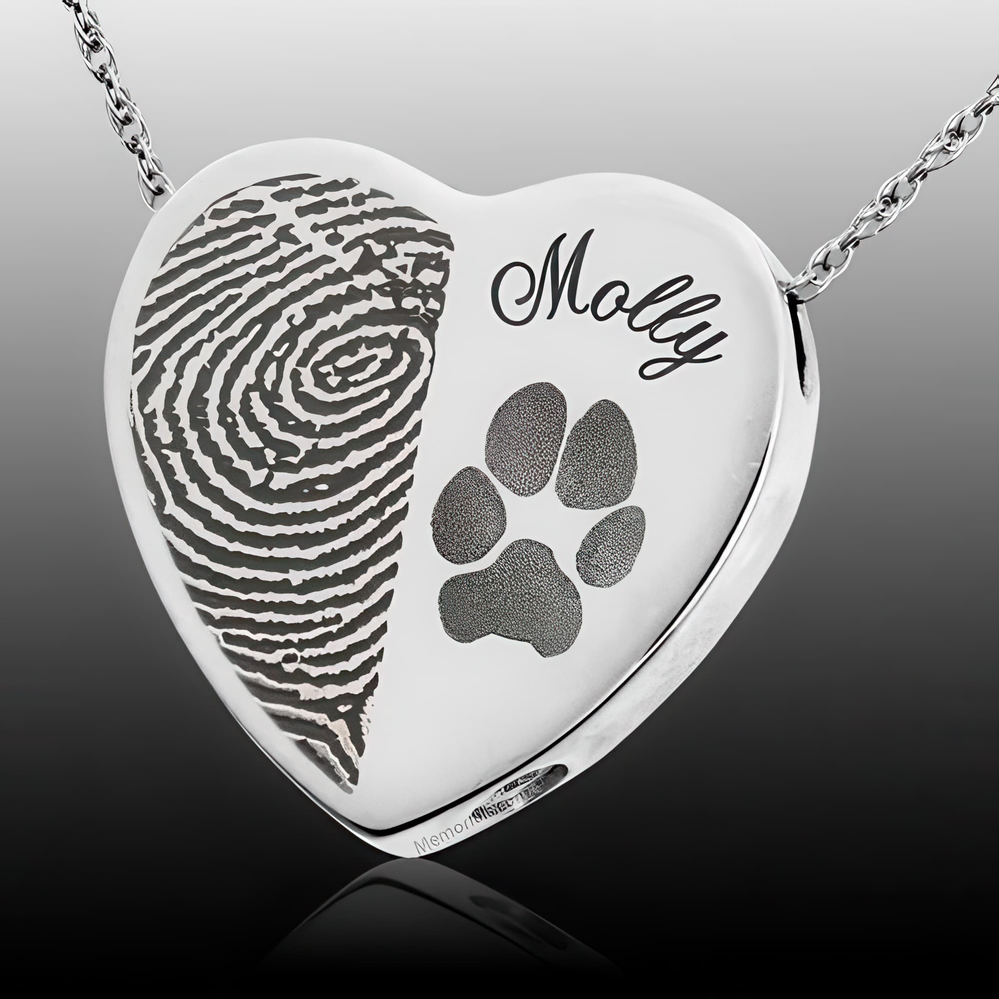 Heart Name & Paw Sterling Print Cremation Keepsake