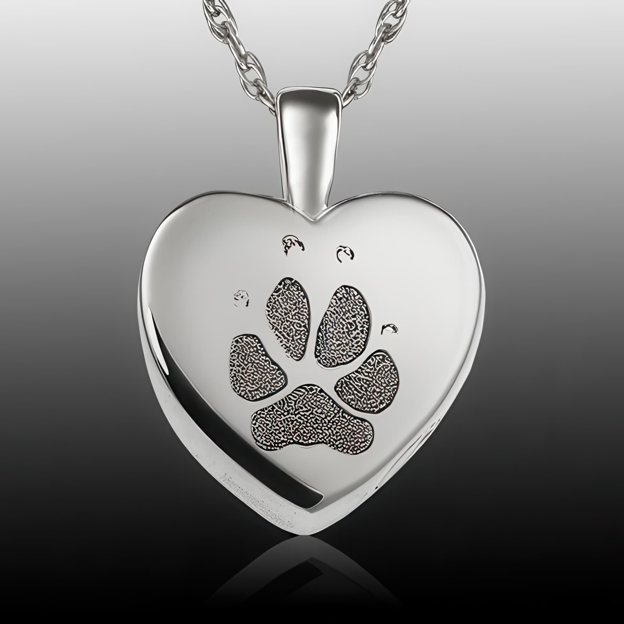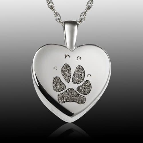 Small Heart Paw Sterling Print Cremation Keepsake