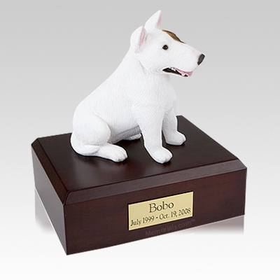Bull Terrier White Sitting Small Dog Urn