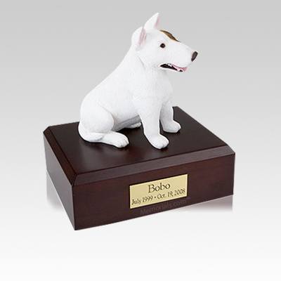 Bull Terrier White Sitting Medium Dog Urn