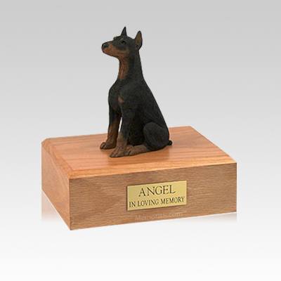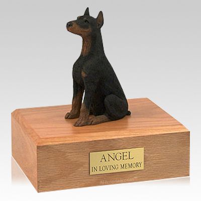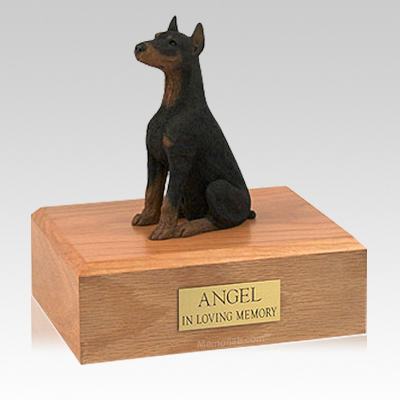 Doberman Black Ears Up Sitting X Large Dog Urn