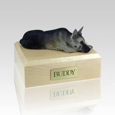 German Shepherd Black & Silver Laying Small Dog Urn