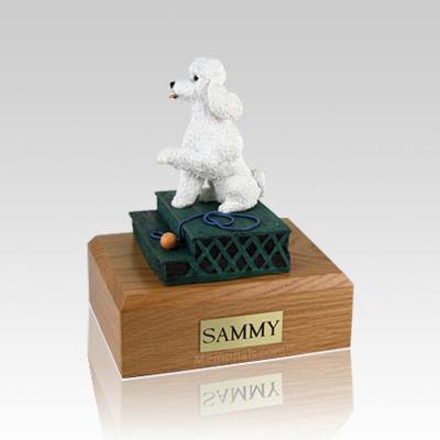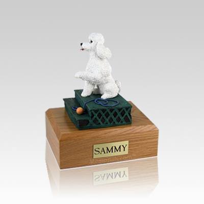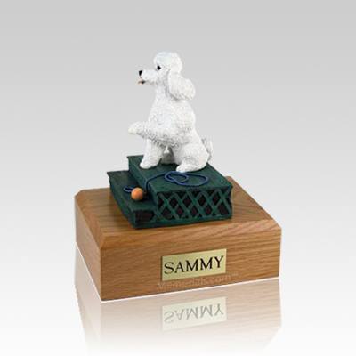 Poodle White Sport Cut Sitting Small Dog Urn
