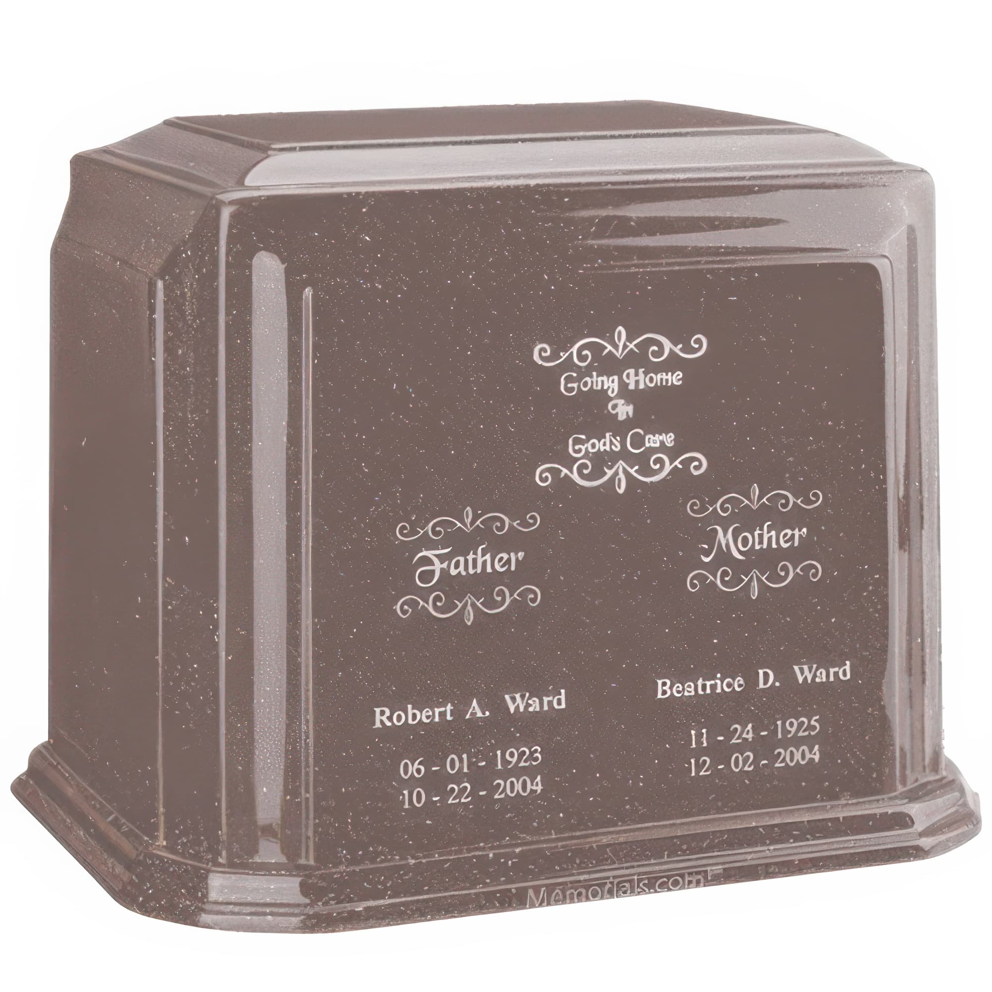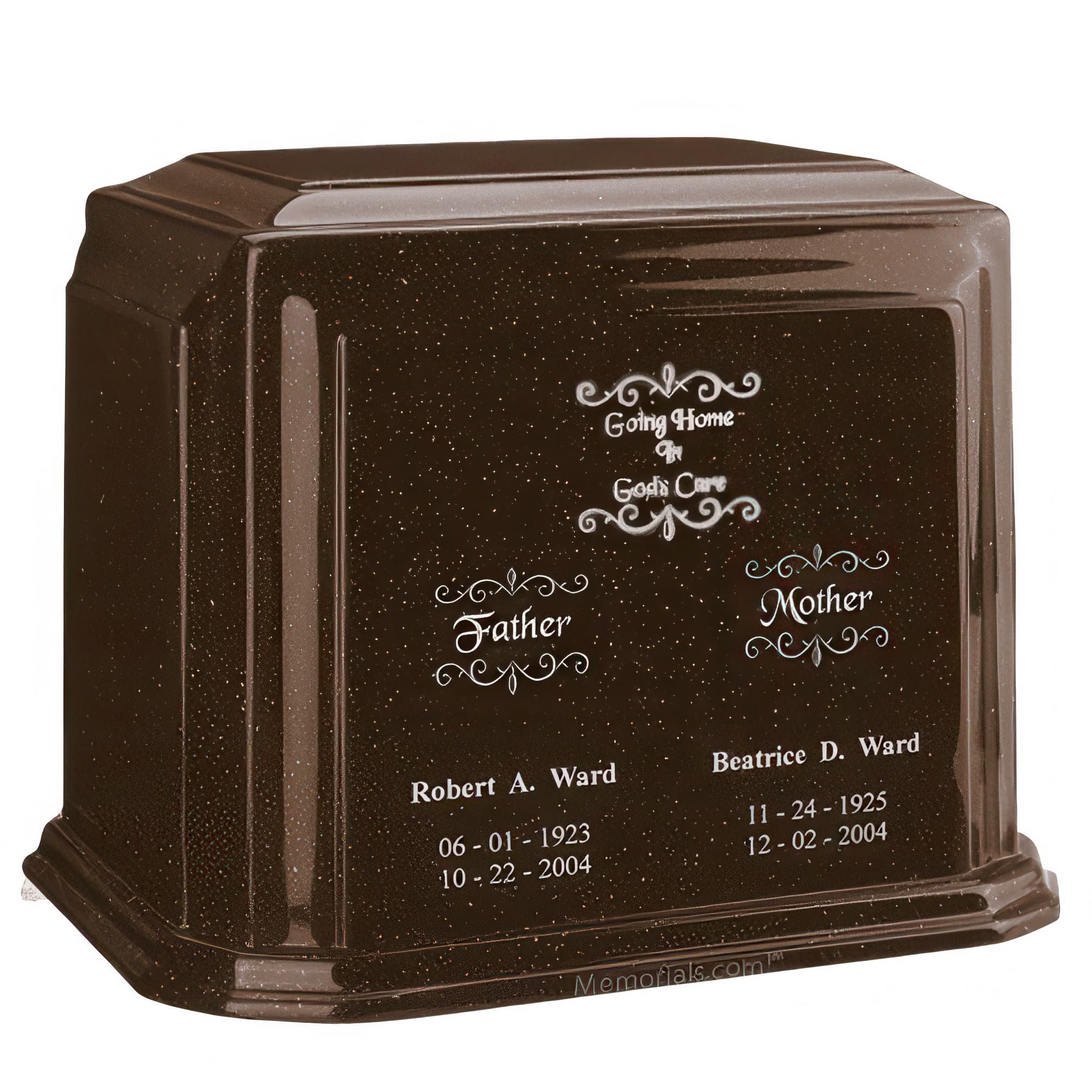 Memorials.com carries over 1,500 companion urns โ double cremation urns designed to hold the ashes of two people in one shared vessel. Our companion urns for 2 adults come in wood, cast bronze, natural stone, cultured marble, ceramic, and glass, with single-chamber and divided two-compartment designs available. Every order ships free with our lowest price guarantee.