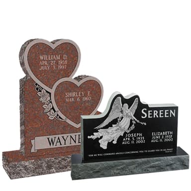 Memorials.com carries over 2,500 headstones and grave markers in bronze and granite โ one of the largest selections of gravestones available online. Choose from upright headstones, flat grave markers, slant gravestones, memorial benches, and mausoleums. Every grave stone is cemetery-approved, custom-designed to your specifications, and ships free with no hidden fees.