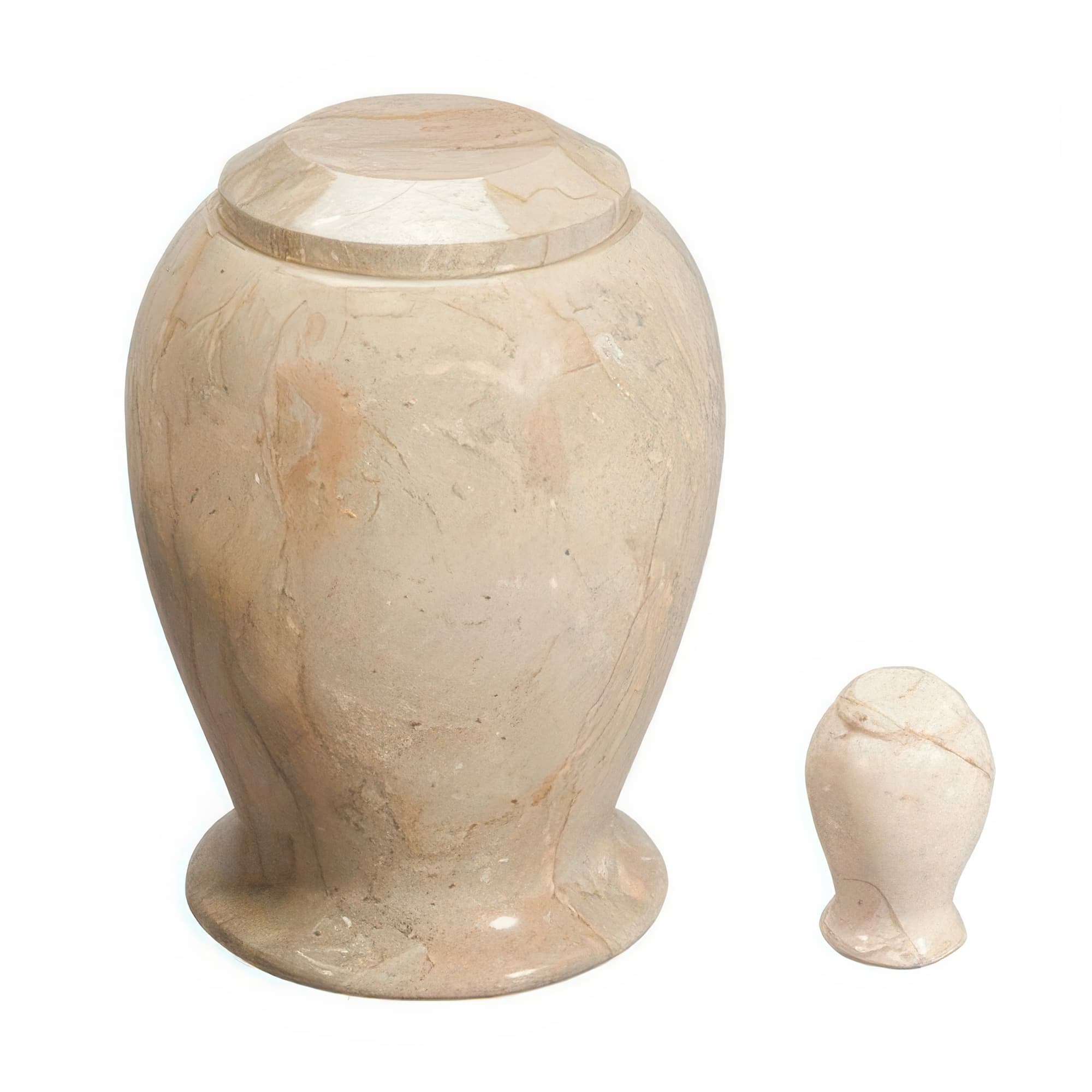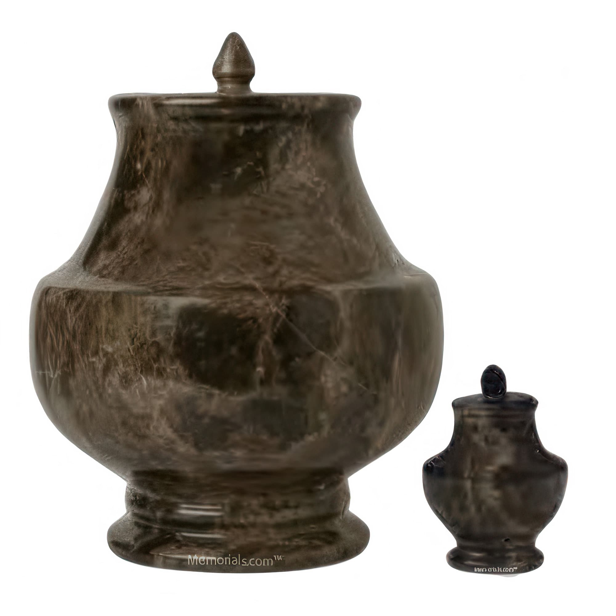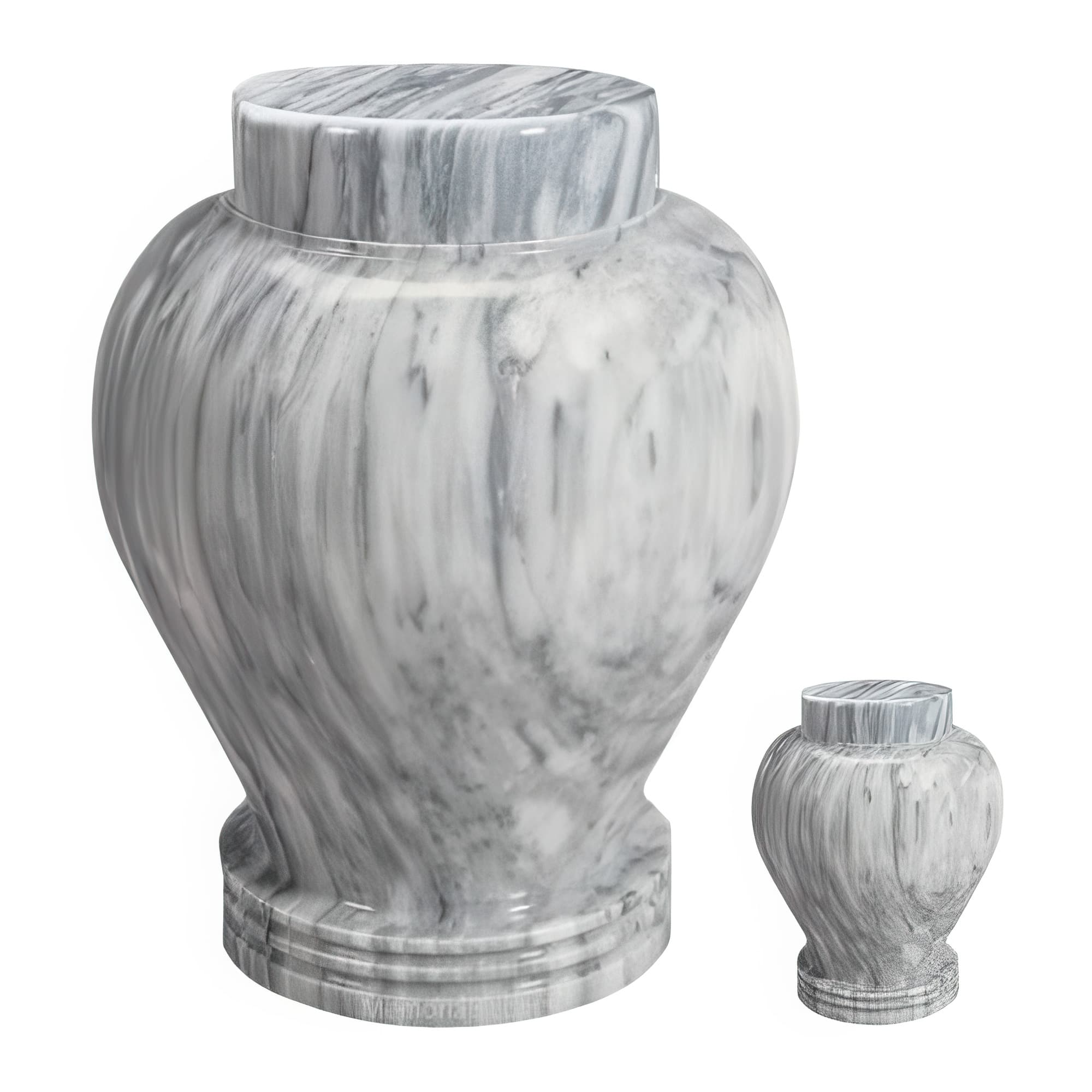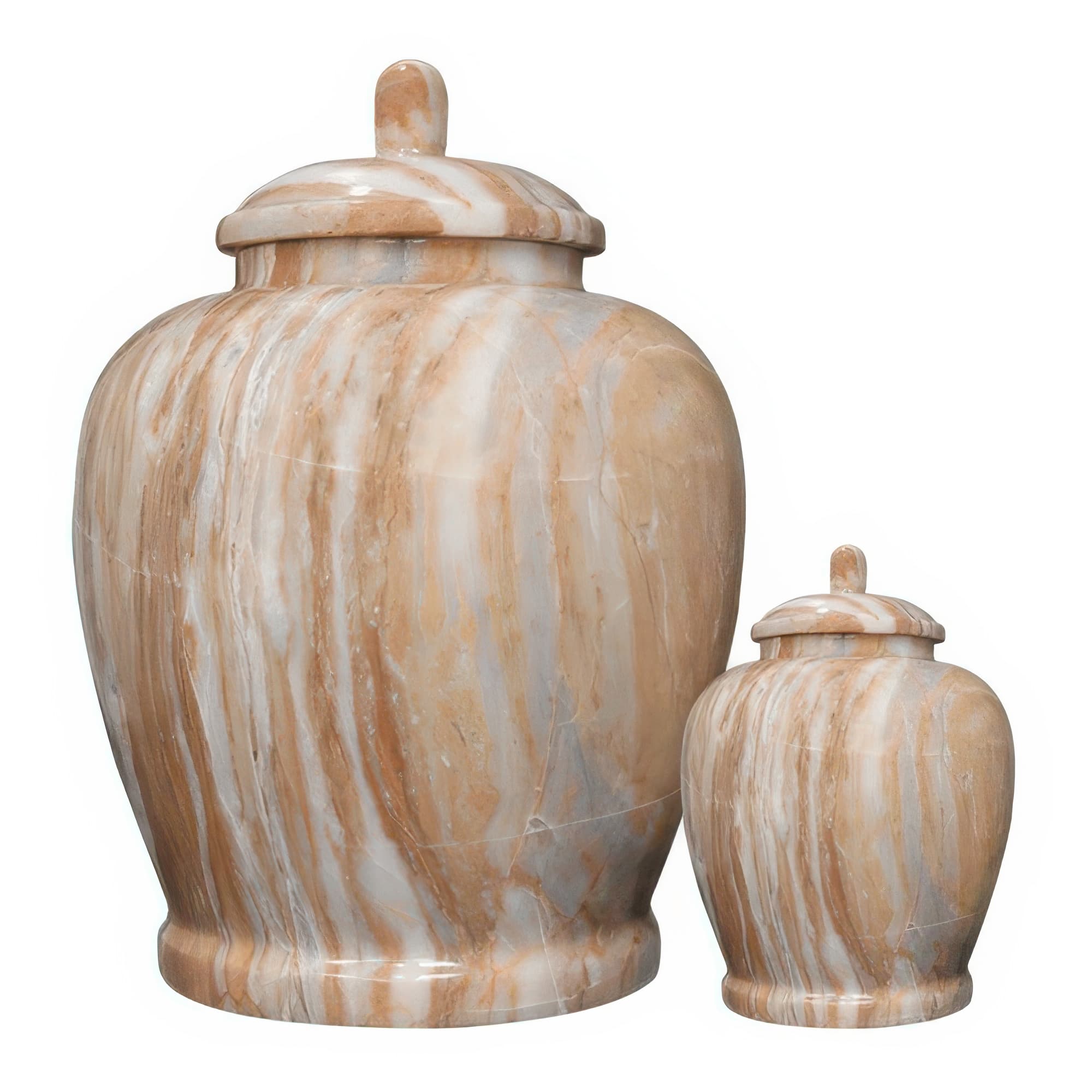 Memorials.com carries over 900 marble urns for ashes in natural marble, alabaster, onyx, granite, and engineered stone โ each piece shaped by its own mineral variation in color, veining, and texture. Our stone urns for human ashes include full adult sizes, keepsake urns for a meaningful portion of remains, and companion urns designed to hold two. Every marble cremation urn ships free with our lowest price guarantee.