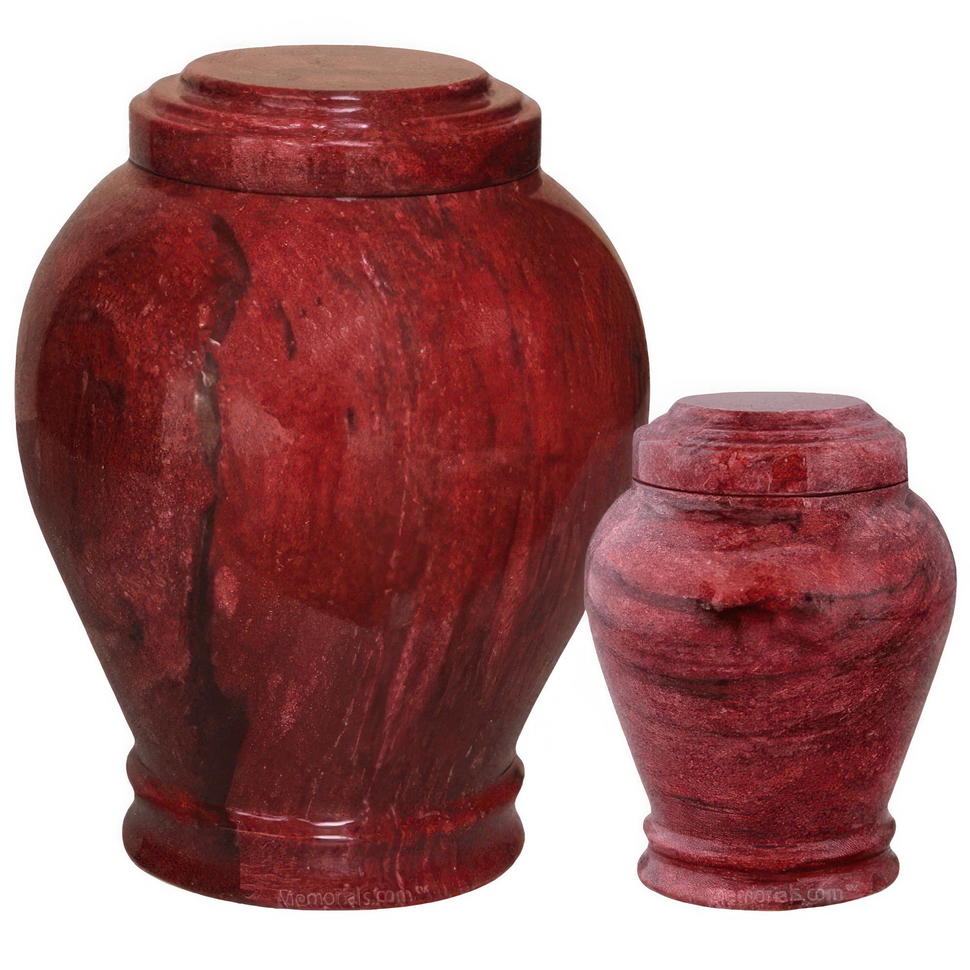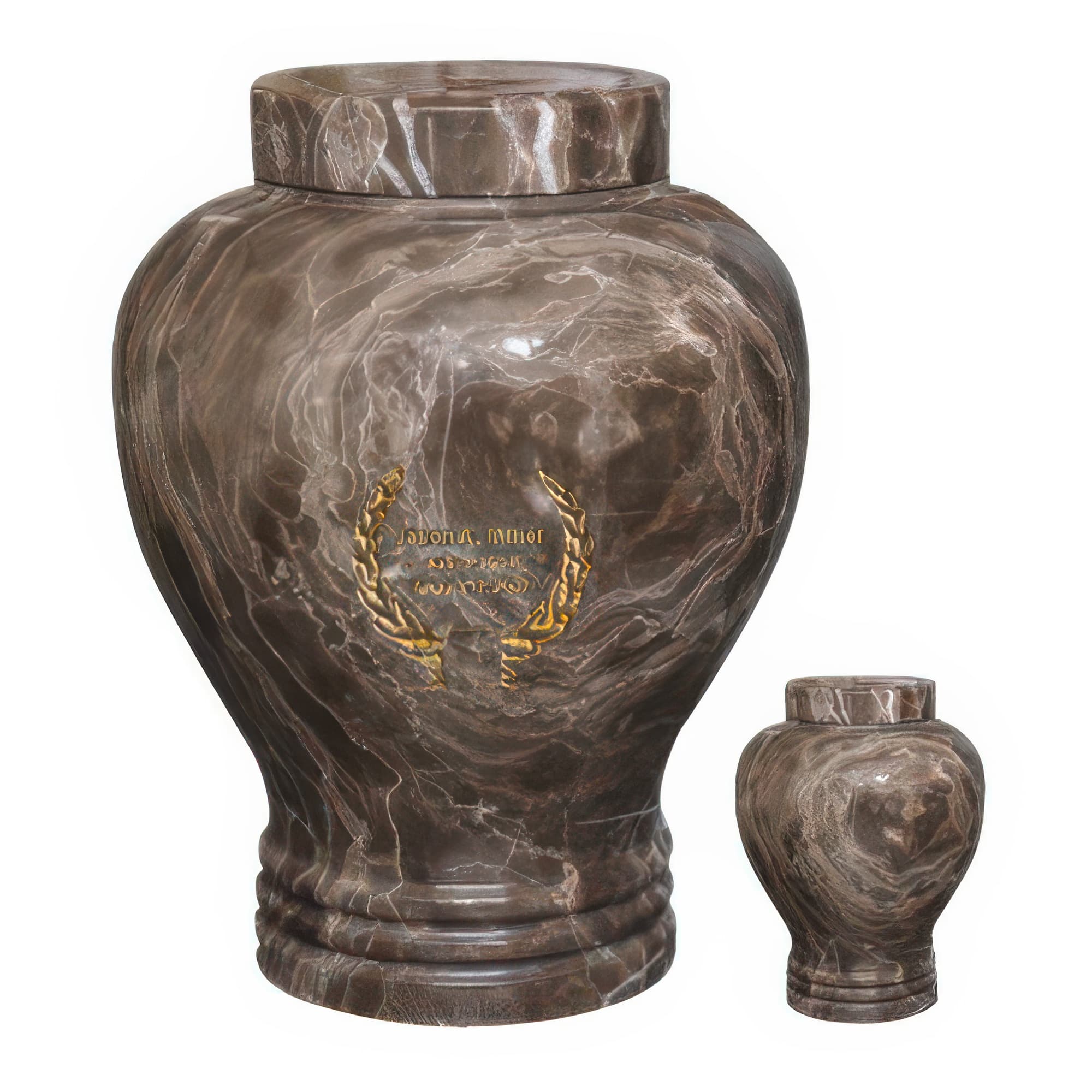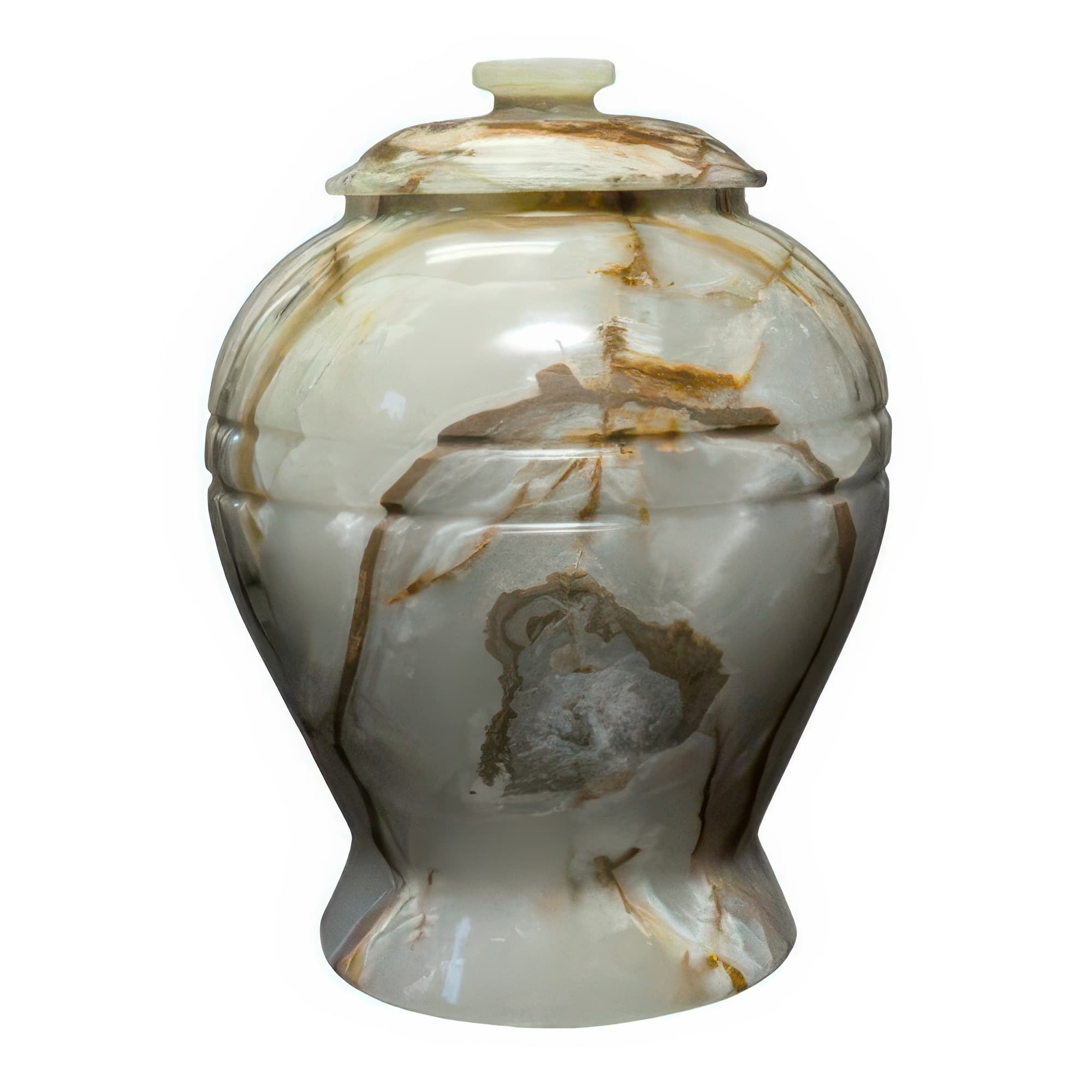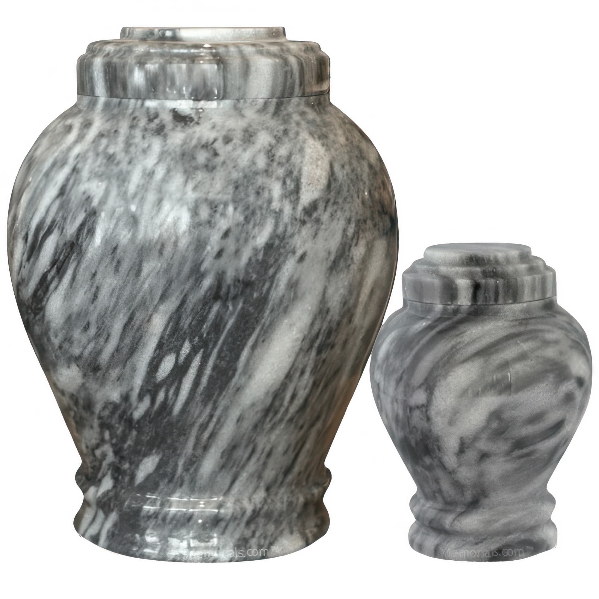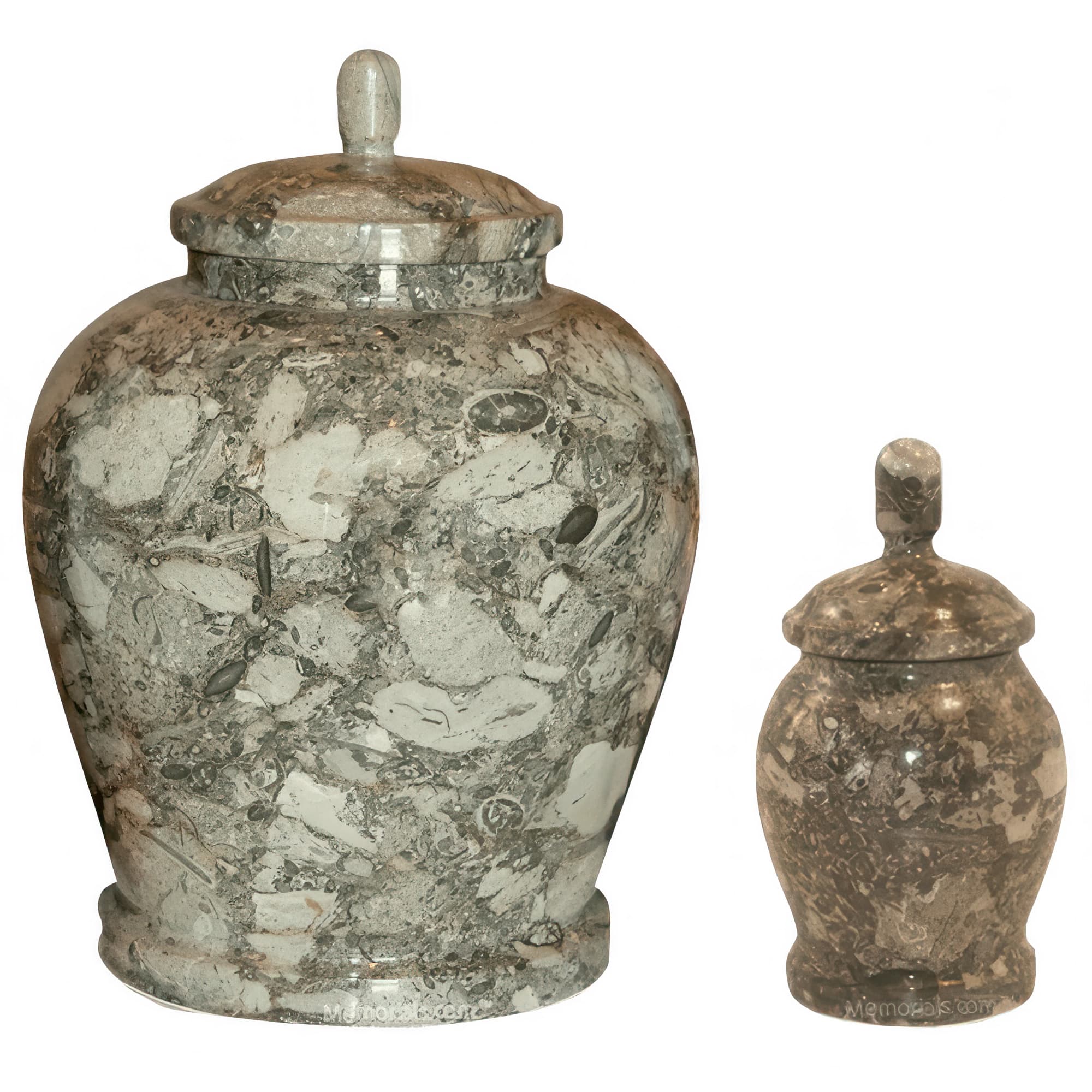 Memorials.com carries over 900 marble urns for ashes in natural marble, alabaster, onyx, granite, and engineered stone โ each piece shaped by its own mineral variation in color, veining, and texture. Our stone urns for human ashes include full adult sizes, keepsake urns for a meaningful portion of remains, and companion urns designed to hold two. Every marble cremation urn ships free with our lowest price guarantee.