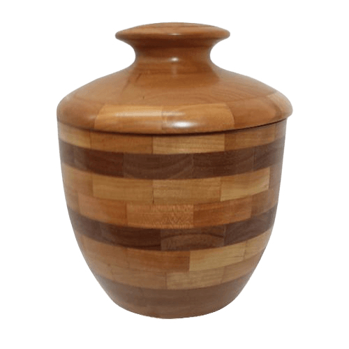 • Our mixed wood urns are visually stunning, with shiny lacquered surfaces and contrasting colors and patterns. For example, our Latida wood urn is handcrafted by a master artisan with contrasting yellow heartwood and black walnut in a cascading geometric design that will dazzle your eyes. Another stunning specimen is the Fireflame wood cremation urn which combines 49 individual pieces of black walnut and red padauk wood. Since these urns are hand-crafted, you can know that no two containers will be exactly alike, just like people.
